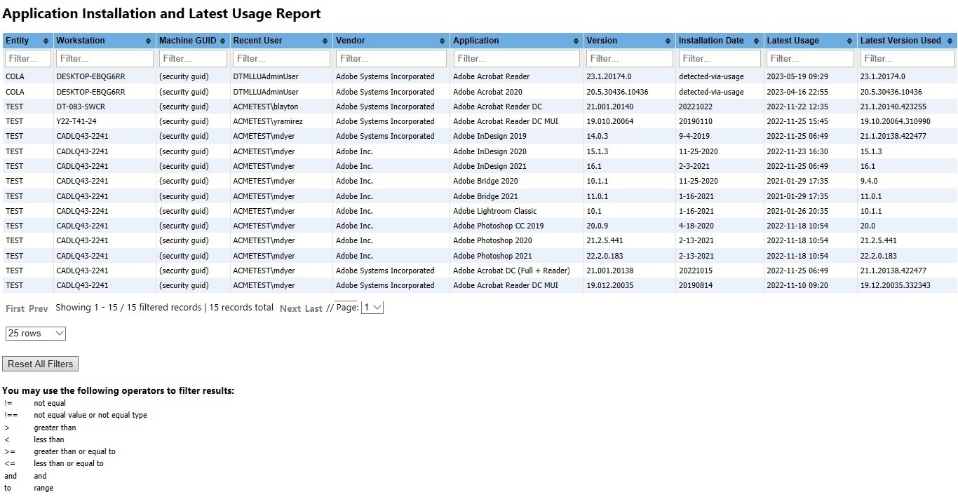 For application suites, we enable fully customizable software normalization by creation of Software Categories. This ability allows related applications to become a reportable unit. Reporting by Software Category provides deep insights into suite utilization, which discrete applications within are being utilized (or not). This additional forensic provides the details you need when renewing application suites.